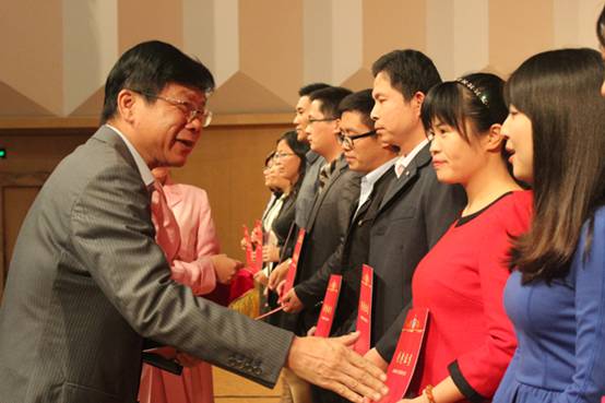 11月12日下午,公司在音乐厅举行2014年陈熹奖教奖学金颁奖大会。会议表彰了一批十佳辅导员、47名优秀班主任以及114名优秀员工。公司党委副书记叶峥嵘、副董事长林俊睦出席大会并为获奖者颁奖。公司孙丽琴老师获得“十佳辅导员”称号,何秀华、雷洁、王琳老师分别获得优秀班主任称号,胡凤清等6位同学获得陈熹奖学金。