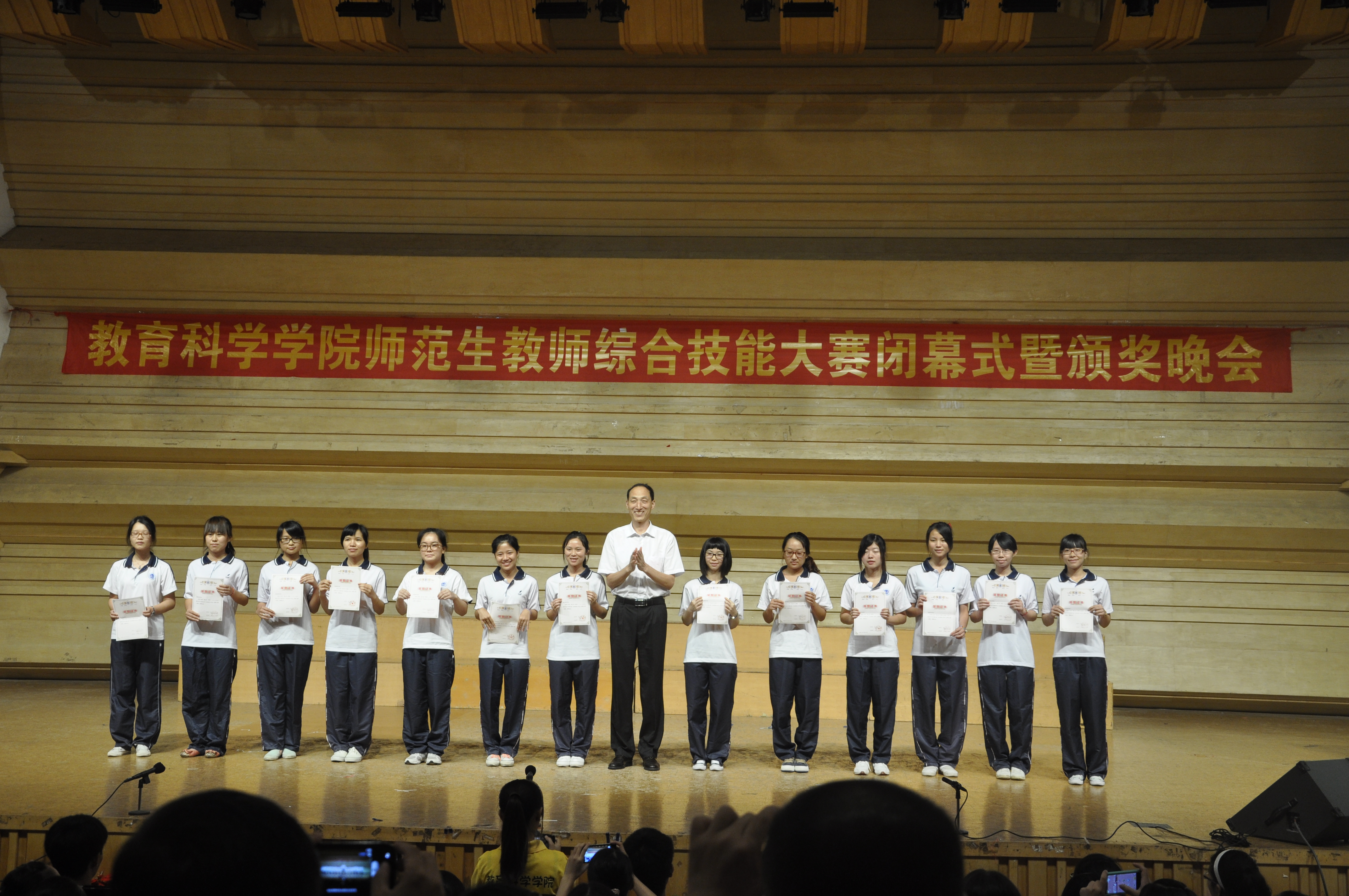 2014年6月8日晚,云顶国际8588yd2013—2014学年度师范生教师综合技能大赛闭幕式暨颁奖晚会在陈熹音乐厅隆重举行。出席本次晚会的领导和嘉宾有:董事长和飞、教务处处长丁孝智、员工处处长陈向荣、就业处处长梁建梅、教育发展基金会主任、招生办副主任张滔华、校团委书记肖俊霞、员工处副处长周建文、厚德书院经理曲中林、力行书院经理王敏,以及云顶国际8588yd全体教职员工和部分员工代表。