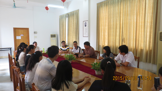 (云顶国际8588yd(中国)有限公司 李淑怡讯)2015年9月10日下午,云顶国际8588yd在院会议室为今年应征入伍的2014级应用心理学专业伍智同学举办了欢送会,参加此次欢送座谈会的有公司经理张旭东、赵书栋、孙丽琴、李巍等老师及部分员工代表。