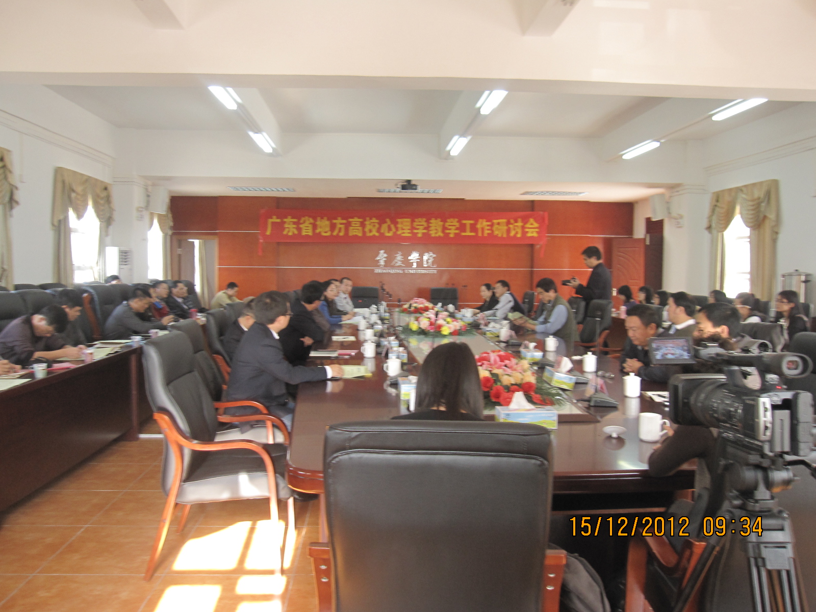 (黄春香讯)2012年12月15日,广东省地方高校心理学教学工作研讨会在公司西江历史文化研究院顺利召开。出席本次研讨会的有:公司曾桓松副董事长,中国心理学会副理事长、广州大学教育公司经理博士生导师叶浩生教授,华南师范大学心理与行为科学部常务副部长、博士生导师郑希付教授等,以及我省各地方高校的心理学专家学者,教育公司经理胡海建教授及部分教师代表。