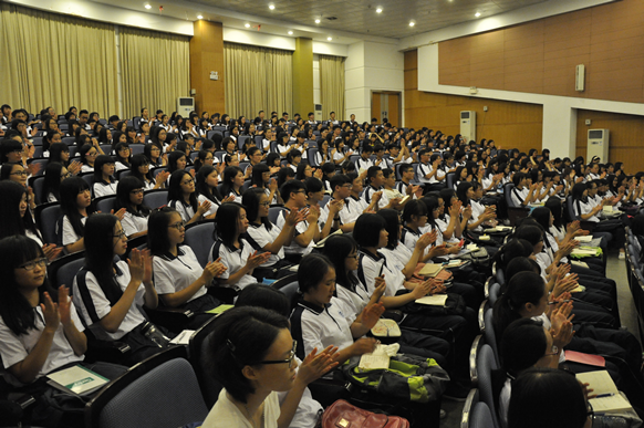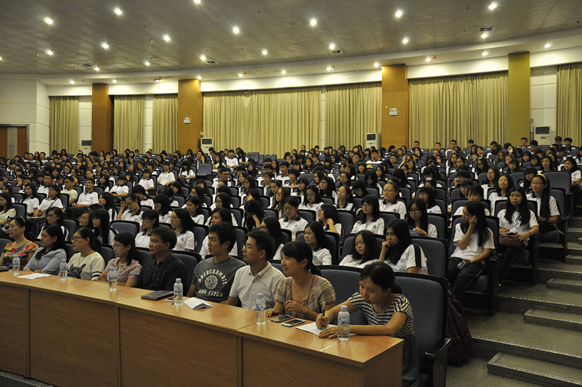 (通讯员 马晓玲 摄影 吴旭辉)为了让2015级新生更好地了解和适应老员工活,9月16日晚上7点30分,云顶国际8588yd新生入学教育的第一课在图书馆学术报告厅举行,公司党委书记徐杰、经理张旭东、副经理文雪、副经理李炳全、党委副书记刘远君及和系系主任、辅导员、班主任及全体新生共370多人出席会议。会议由党委副书记刘远君主持。