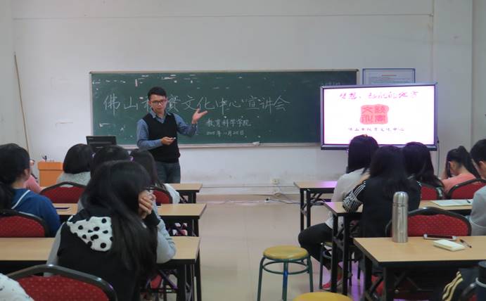 本网讯(记者 马晓玲)11月25日下午,佛山秋实文化中心宣讲会在鲁迅楼演示室开讲。主讲人是公司11届初等教育专业员工龙光明、13届小学教育专业员工林国煌。公司辅导员何秀华、赵书栋老师出席了本次宣讲会。