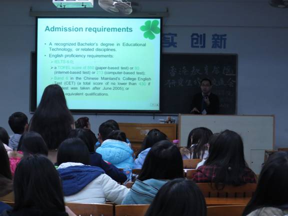 在讲座的后半部分,郑博士和在场的同学们一起讨论了一些关于考研以及就业等各面的问题,并特别针对内地员工如何在香港教育公司就读研究生和如何在香港地区寻找机遇等方面做了详细的交流,现场气氛十分融洽。马玉桦老师还帮同学们向郑博士询问了香港教育公司学费、奖学金设置以及各项惠生政策等情况,郑博士一一作出了解答。在讲座的最后,郑博士真诚欢迎有意愿报考该院研究生的同学们来香港学习,并为同学们的学习生活献上祝福。本次讲座在同学们热烈的掌声中圆满结束。