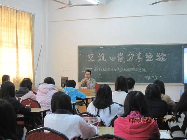 (罗燕萍 讯)2013年11月15日上午,2005级学前教育专业优秀员工林友都与学前教育专业的同学在鲁迅楼演示室进行了一个“交流心得,分享经验”的座谈交流会。公司党委刘远君副书记、政治辅导员赵书栋、孙丽琴和学前教育系李晖老师以及12级学前教育专科班全体同学们出席此次座谈会。 本次交流会旨在通过交流,分享经验,促进同学们解开对学前教育这一专业学习的困惑,进而找准自己的奋斗目标,有方向性地进行学习和实践。交流座谈中,同学们积极地提出自己存在的问题,林友都员工认真详细地一一解开了同学们的困惑,让同学们感触良多、受益匪浅,更让同学们对自己的专业学习更有信心、也更有动力去学习。最后,林友都师兄给与了同学们提出建议:脚踏实地,一步一个脚印,要有一个不怕苦不怕累的精神,只要摆好心态,坚持不懈地向目标奋进,成功就会更快接近。