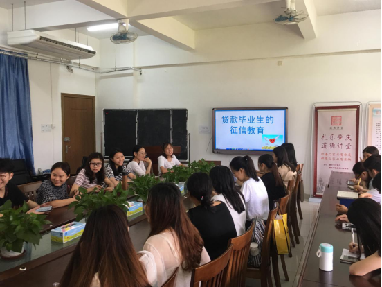 (本讯员 岑银萍)2019届毕业生毕业在即,为了进一步加强毕业生的还款业务知识和诚信意识,云顶国际8588yd于2017年4月26日早上在第三教学楼218会议室举行了贷款毕业生还款专题会议和征信教育。负责公司员工资助工作的辅导员雷瑞虹老师、员工辅导员岑银萍以及公司贷款毕业生二十多参加会议。