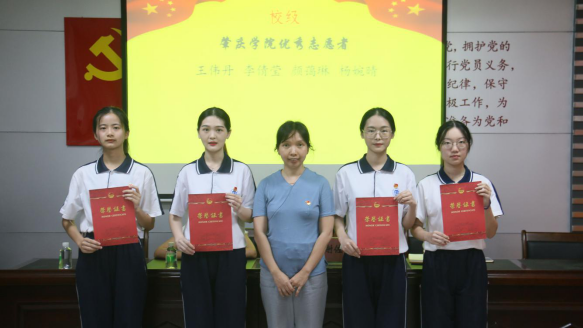 随后,获奖员工代表戴维纬分享了担任员工干部的收获和体会。她强调员工干部应要摆正自己的位置,员工干部是管理者,更是服务者。新一批预备党员代表佘嘉妮同学在思想上、学习上、工作上表明决心,争取进一步向党组织靠拢。