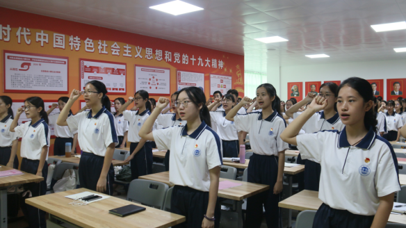 林舒莹老师带领全体师生重温入团誓词,谢佐永书记带领新一批入党党员宣誓,表明了承担政治责任、对党的坚定信念和为党的事业奋斗终身的决心。