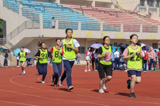 此次运动会分为径赛和田赛两大类,共设有100米、200米、400米、800米、1500米、4*100米接力、实心球、铅球、跳远、三级跳远、跳高共11个项目。在激烈的100米、200米的短跑比赛中,运动员们如离弦之箭,如狩猎之豹,竭尽全力向终点奔去,将速度之美诠释得淋漓尽致。在800米和1500米的长跑赛程中,运动员们用脚步丈量跑道,滴落的汗水开出了最美的青春之花。在最后的接力赛中,各班的运动员之间默契配合,场边的同学奋力呐喊,众人团结一心,齐为班级争光。
