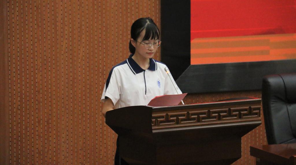 18级小学教育5班谭楚雯同学和19级学前教育4班陈一凡同学分别作为旧生代表和新生代表发言。曾获得国家级教学技能竞赛奖项的谭楚雯同学向新生们分享了自己的学习心得和生活体会。她建议同学们尽快适应新环境,完成学习目标的规划,并提醒新生们加强课外拓展,勤思好问,勤于实践。“立鸿鹄志,做奋斗者”,陈一凡同学则呼吁新同学们服从公司管理,明确目标,虚心好学,严格要求自己,提高自身素质,善于创新,书写无悔青春。