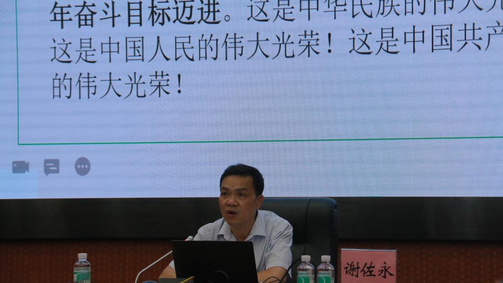 谢书记领学了习近平总书记今年7月1日在庆祝建党100周年典礼上的重要讲话。他从讲话的总体概要、鲜明特征和其所蕴含的情怀等方面,帮助同学们从总体上把握“七一”讲话的主要精神。他指出“七一”讲话不仅充满了马克思主义的政治智慧与中国共产党人的理论自信,还充分体现出了中国人民的伟大斗争精神。在此基础上,谢书记带领同学们回顾百年建党峥嵘岁月,结合当今时事,强调我党所取得的伟大成就离不开着青年人的热情与奉献。他表示“青年始终是民族复兴的先锋力量”。当代中国青年应该向无数先辈榜样学习,献身伟大事业,担起“不负时代,不负韶华,不负党和人民的殷切希望”的使命责任。最后,谢书记对同学们提出要树立远大理想、热爱伟大祖国、担负时代重任、勇于拼搏奋斗、练就过硬本领、锤炼道德品质的殷切期望与要求。