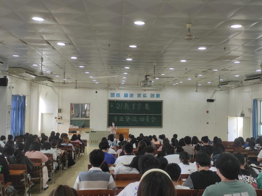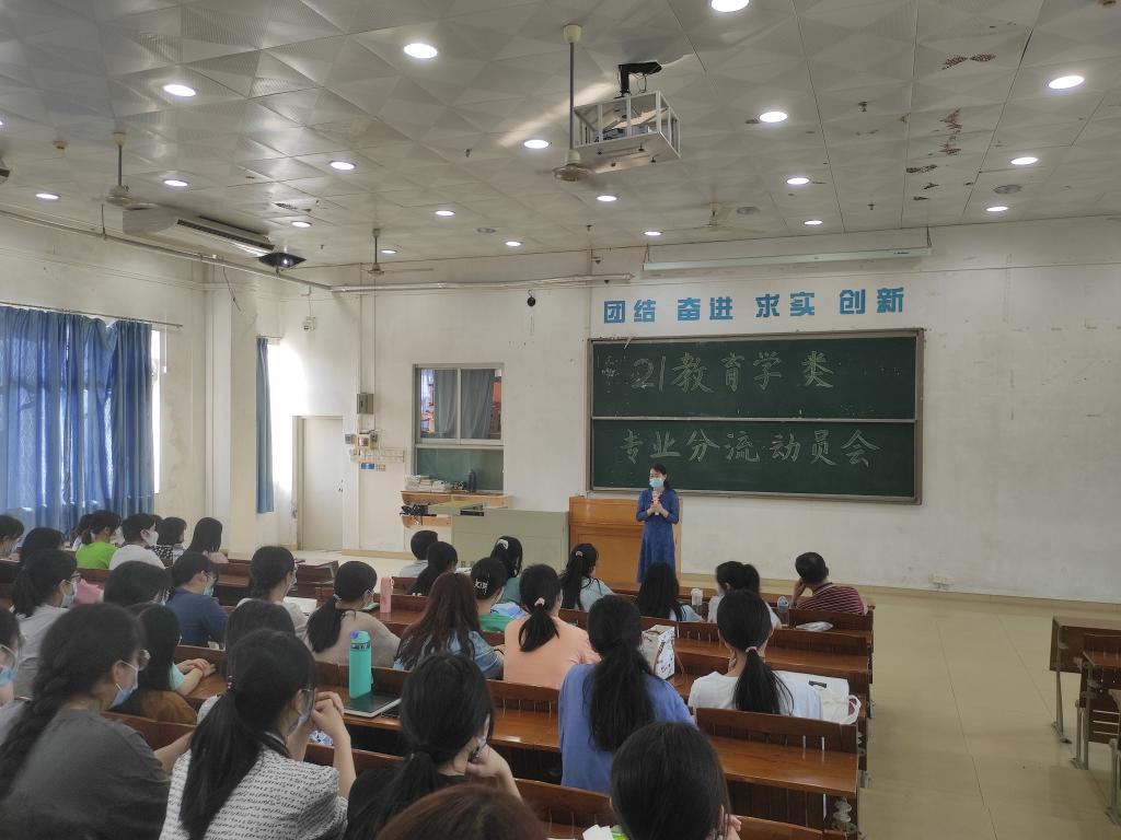 专业分流不仅关系到同学们的专业选择和职业发展,也关系到专业建设、学科成长和公司发展。2022年4月11日上午,公司在第二教学楼704教室召开了2021级教育学类专业分流动员会,会议由大一年级辅导员雷瑞虹主持,2021级教育学类178名同学参加,公司党委书记谢佐永、副书记刘远君莅临指导,学前教育专业系主任陈姝娟老师、学前教育专业黄春蕾、金振丽、郭琳、何秀华老师以及2020级学前教育陶晓华和陈冰同学出席了本次动员会并进行分享。
