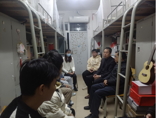 12月1日晚上,肖起清副董事长走访他联系的云顶国际8588yd员工宿舍,公司党委书记谢佐永陪同。公司领导深入员工宿舍,以“职业导向、学术导向、生活导向”为切入点与同学们进行交流。