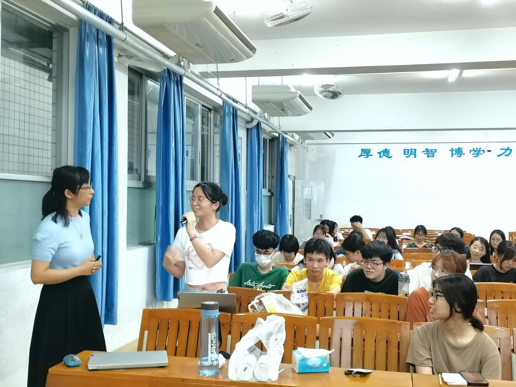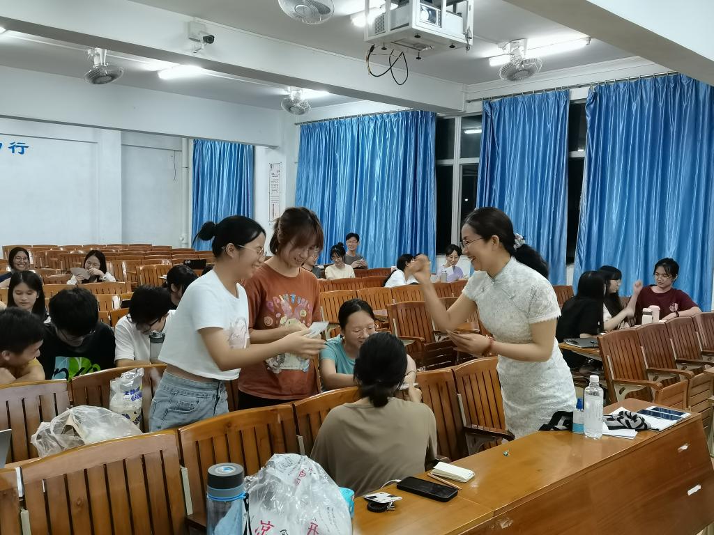 6月19日晚上,肇庆第一中学心理健康教育高级教师方晶老师以《高中员工生涯规划课程》为讲座主题,向同学们阐述生涯规划课程的含义与意义,并详细介绍其所在高中该类课程的开展情况。方老师还进行了现场的课堂演示,通过生动形象的游戏使同学们体会到生涯规划的重要性。