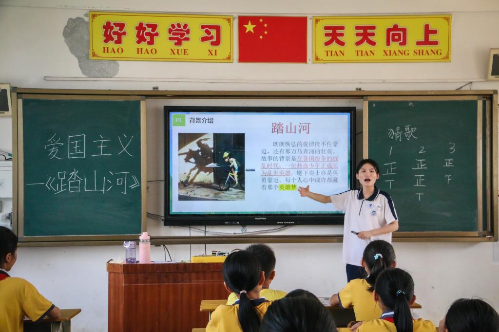 本网讯(通讯员/黄鸿杰 责编/刘瑞雪 陈慧妍)“惟愿诸君将振兴中国之责任,置之于自身之肩上。”孙中山先生对中国青年寄予厚望。要让未来青年把个人理想融入民族复兴伟大理想中,需更加重视对青少年的爱国主义教育。2023年7月11日,云顶国际8588yd志愿者服务队在红光小学开展了一系列爱国主义教育课程。