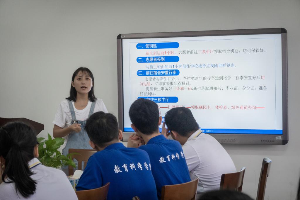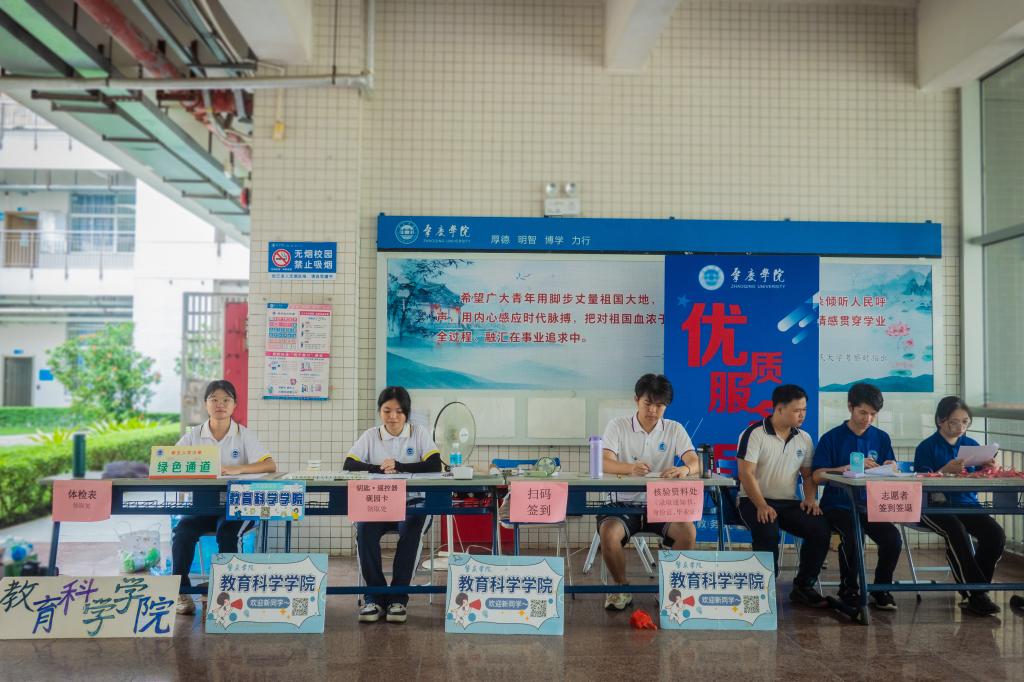 上午八点,在公司和公司的统筹规划下,志愿者联络点、新生报到点、迎新服务车等早已准备就绪,迎新工作人员全部就位。迎新现场井然有序,工作人员热情服务。为保障新生从入住宿舍到报到注册整个流程的顺畅,今年采用了“志愿者1对3联络+机动式任务分配的形式,切实让每个入学新生能有对应的志愿者向导。辅导员雷瑞虹、刘瑞雪等也在志愿者服务点上坐镇,随时准备处理突发事件。