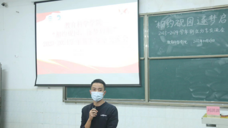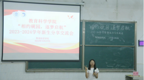 10月29日晚,2023级应用心理学专业、教育技术学专业和小学教育专业共同邀请了优秀员工代表,分别为:2019级小学教育1班莫绮璇、2019级应用心理学1班刘源和2021级应用心理学3班刘淇淇到场分享经验。她们分别就考研、师范生技能培养、如何平衡员工机构工作与学习等方面进行经验分享,并耐心解答新生疑问。2023级辅导员梁少辉老师则围绕礼节礼貌、实习经验、员工机构工作经验三个方面给予员工指导,并对如何制定班级建设方案进行详细讲解。