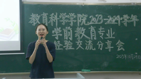 10月24日晚,2023级学前教育专业邀请2020级学前教育1班优秀员工代表陶晓华、李晓君到场分享经验,并邀请援疆支教优秀员工代表洪文怡以线上视频形式传授经验。她们分别从员工机构工作与学习的关系、省级师范技能大赛参赛的注意事项、援疆支教工作日常三个方面进行详细介绍和经验分享,并对新生普遍关注的问题进行解答。
