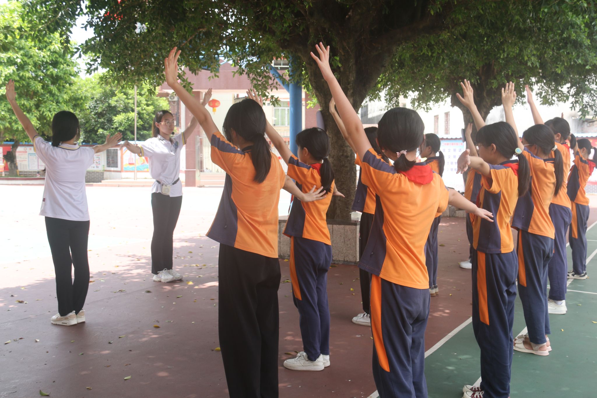 在体育类课程中,实践团成员以篮球和体操为切入点,开展了相关的教学活动。在《迎“篮”而上》课程中,实践团成员通过组织脑后传球、拔萝卜、传球蹲蹲蹲等环节,让同学们体验体育活动中团结协作的魅力。随着《春晓》轻快的音乐响起,实践团的成员们开启了一堂生动的体操课。他们通过悉心的指导,帮助同学们感受音乐的律动,掌握各种体操动作,在这个过程中提高了同学们身体的协调性和节奏感。