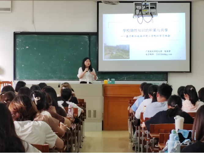 近日,云顶国际8588yd举办“公司隐性知识的积累与共享”专题讲座。本次讲座特邀广东技术师范大学陈丽君教授主讲,应用心理学专业系主任周彩虹,教师岑延远、付媛姝以及2022级应用心理学全体同学参加。