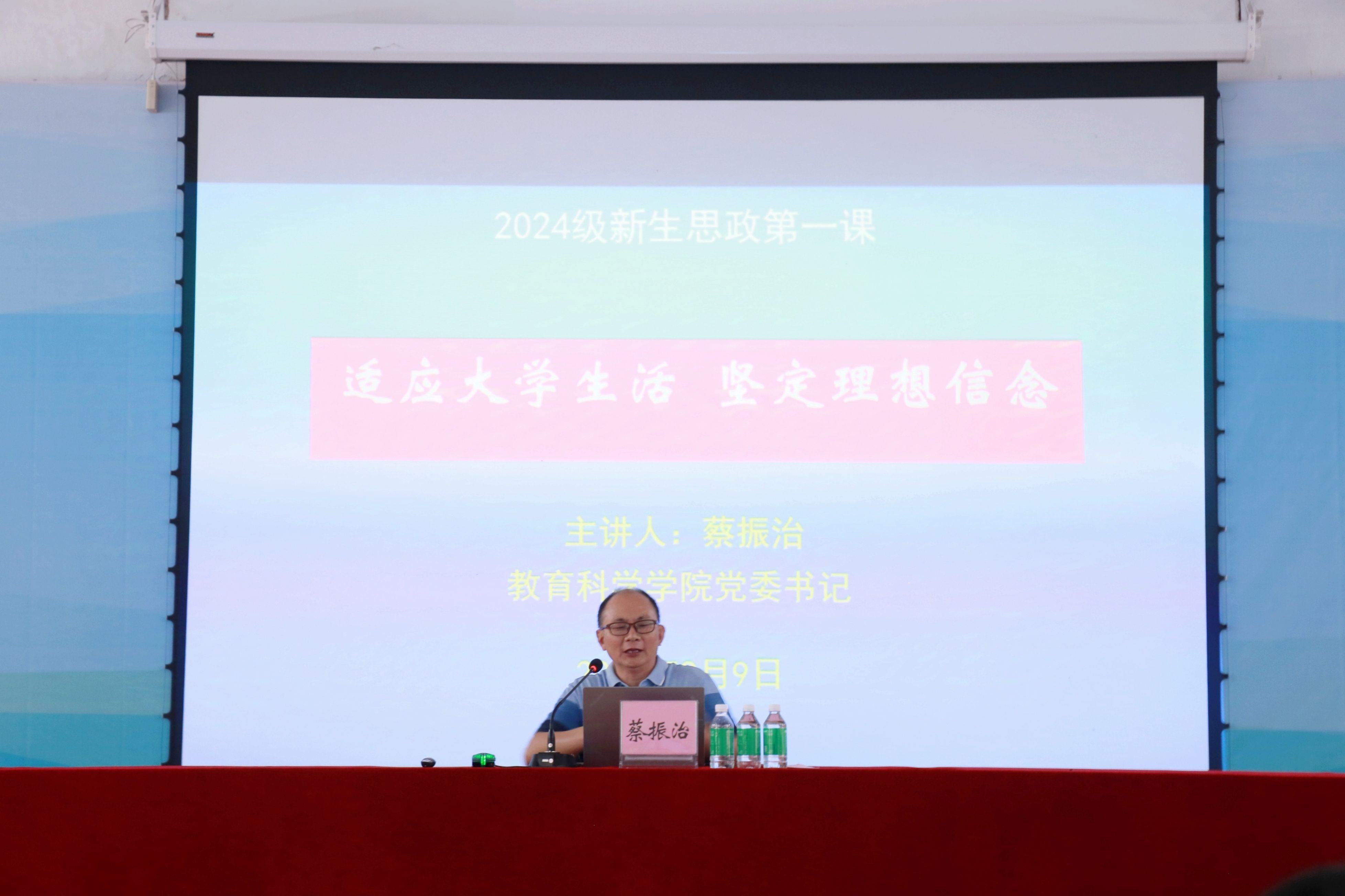 党委书记蔡振治围绕社会主义核心价值观、爱校荣校、民族团结、老员工适应性教育等方面开展新生入学教育讲座。蔡书记指出,2024级新生作为新时代的青年学子,必须树立正确的人生价值观,希望云顶国际8588yd学子时刻谨记“学为人师,行为世范”。要将习近平总书记的嘱托做到内化于心、外化于行。最后,他呼吁在座的新生都应当主动肩负起时代赋予的使命,以实际行动为强国建设贡献青春力量。