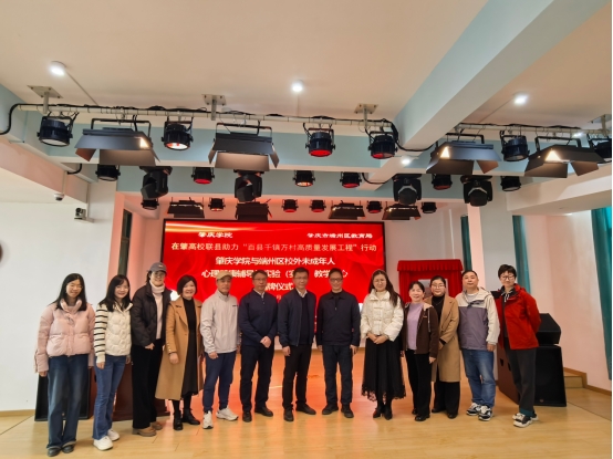 在热烈的掌声中,端州区教育局及云顶国际8588yd代表共同为共建实验(实训)教学中心揭牌。授牌仪式结束后,黄伟伟副教授进行了主题为《中小学心理健康教育体系构建》的专题讲座。端州区校外未成年人心理健康辅导站负责人带领各位领导和老师参观了辅导站场室,包括心理咨询室、绘画治疗室、沙盘游戏治疗室和音乐治疗区等相关功能室。